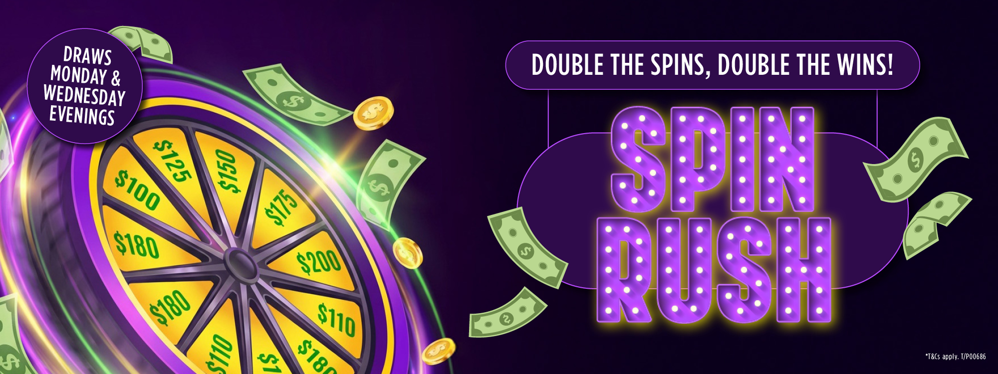 Spin Rush brings the excitement twice a week, giving Members the chance to win instant cash!